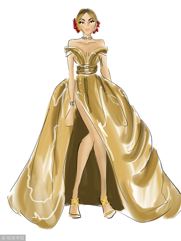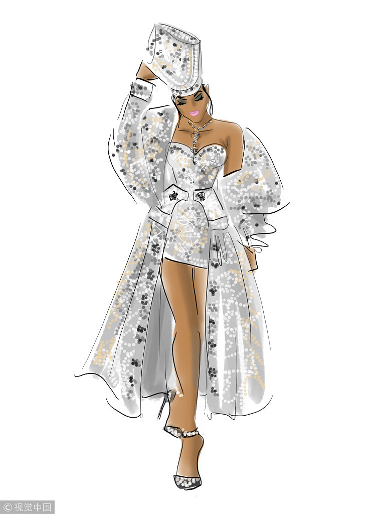 2018纽约大都会艺术博物馆慈善舞会:明星礼服漫画手稿。(图片来源:视觉中国)