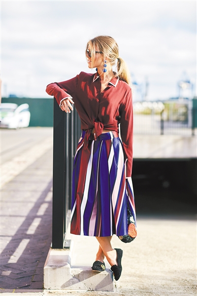 条纹伞裙能很好地修饰臀部和腿部的线条,适合下半身粗壮的人。