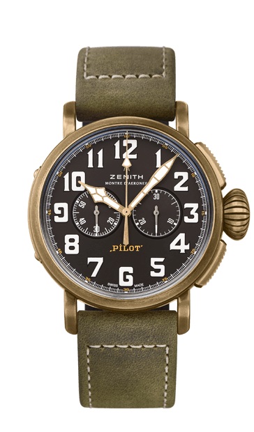 PILOT飞行员系列TYPE 20青铜计时码表,青铜表壳,绿色油性磨砂皮表带,45毫米,参考价格:56.200