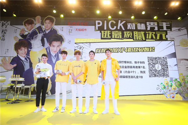 图:达能柠檬来的见面会上F4帅气现身,与粉丝亲密合照