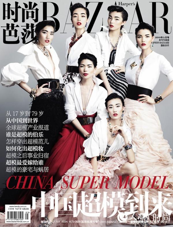 2010年3月刊,时尚芭莎特别邀请李丹妮、孙菲菲、秦舒培、莫万丹、吕燕、雎晓雯6位超模,由著名摄影师冯海掌镜,时尚策划人李晖担任造型,拍摄了时尚芭莎首次超模封面,封面中的6位超模均以一袭白衣加身,展示了独特的东方美美。