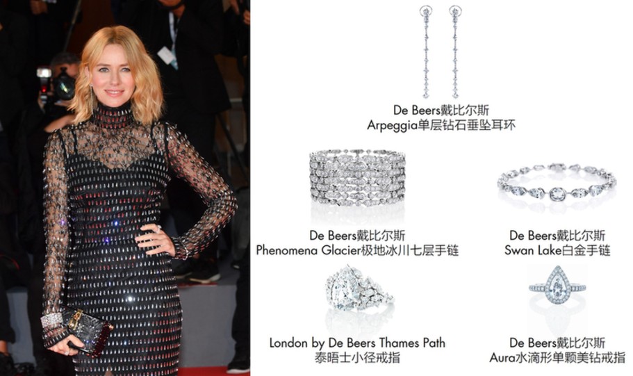深圳新闻网讯 2018年9月3日,第75届威尼斯国际电影节主竞赛单元评委娜奥米·沃茨(Naomi Watts)佩戴戴比尔斯珠宝(DE BEERS JEWELLERS)闪耀出席电影《永恒之门》首映礼。