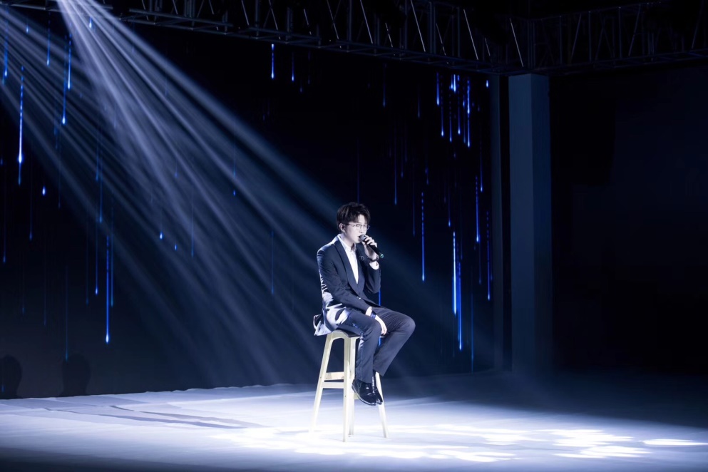 毛不易现场演唱《平凡的一天》,为潮流发布会倾情献声。