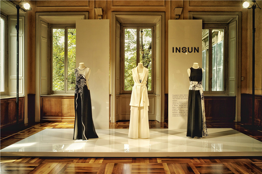 图为影儿时尚集团在米兰时装周期间举办的静态展