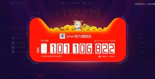 2017年“双11”YINER音儿天猫总成交额破1亿