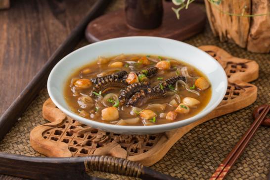 马鞍桥乃淮扬名菜,鳝鱼段切花刀,下锅烧制后弯曲,既似马鞍又似小桥而得名,加入红薯制成的宽粉,小火煨至汤汁稠浓,薯粉晶莹剔透,软透爽滑,鳝段酥香,风味隽永,真正有“小暑黄鳝赛人参”之誉。