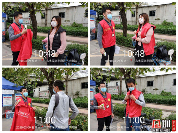 在社区工作人员的指导下,这位男子穿上“红马甲”,手拿体温枪,立即投入到了防疫义工服务中。为进出人员测量体温、登记等,这位男子“不漏一车一人”,义工服务做得十分认真。半小时志愿服务后,该男子意识到自己不戴头盔的错误行为,并表示以后会注意,“这是一次很特别的‘教训’,以后我肯定会记住戴头盔的!”