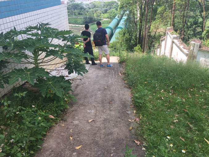 【直播君】:经过一路跋涉,直播小分队已经到达今天的第一站坑梓水库啦,先看看地面这一条条引水管道,水库全貌航拍图马上新鲜出炉!