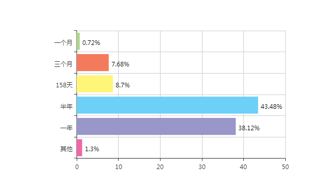 关于理想的产假时间,有人认为,如果能有三年最好,三年后孩子上幼儿园,妈妈再上班。从数据看,认为产假半年的观点占多数,为43.48%,占比第二的是产假一年,38.12%的网友赞成。
