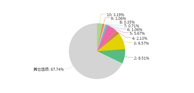 给10分的3.19%,给3分的有9.57%,给2分的有8.51%。需要提前说明的是,满分是10分。最多的是67.74%,其他选项。其他选项是多少分呢,0-1分。