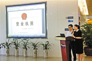 连续多年来深圳商事主体总量位居全国大中城市第一。图为工作人员介绍新版的营业执照。(本报资料图片)