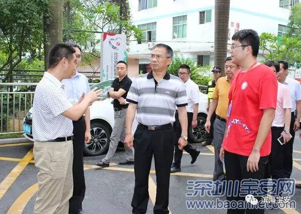 黄盛华一行在龙华区大浪水围社区听取相关负责人介绍社区情况。
