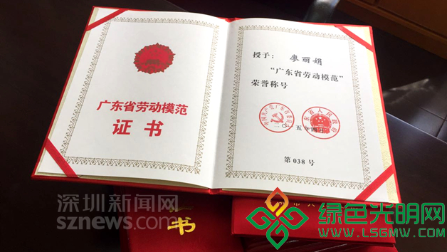 廖丽娟获“广东省劳动模范”荣誉称号。