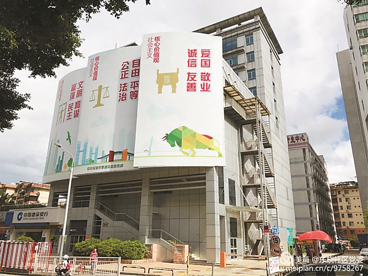 当记者行至罗湖妇幼保健院和罗湖文化馆时发现,前者的大门口有LED屏循环播放文明标语,而后者的门口,三个巨幅海报上,有拓荒牛,有深圳城市风貌,有“爱国、诚信、友善……”24字社会主义核心价值观。很显然,东晓街道已然将片区内的重要建筑充分利用起来,作为创建文明城市的宣传阵地,让人禁不住点赞。