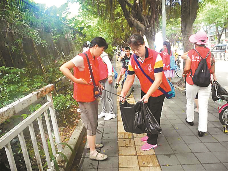 东晓义工组队上路,清洁人行道垃圾,用行动宣传文明。