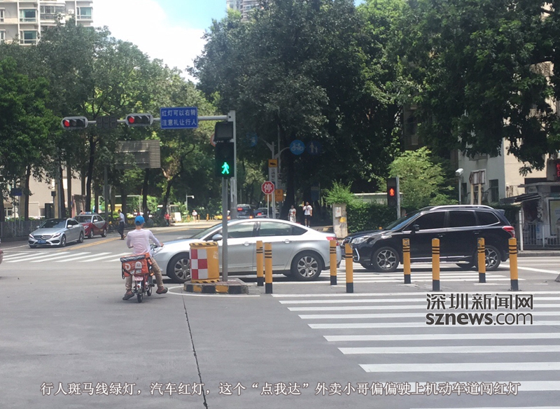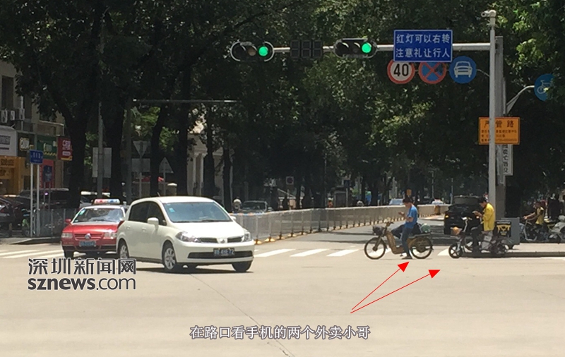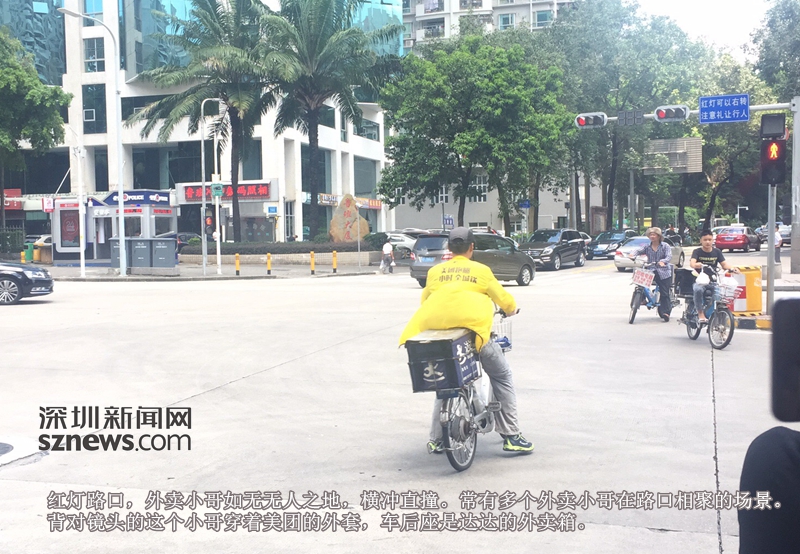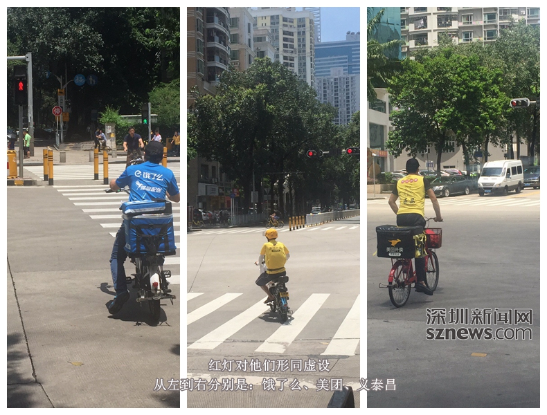 上述这些广告词,并不是说说而已。每一次与小汽车的擦身而过,每一次旁若无人冲红灯、每一次在机动车道见缝插针,都让你感觉,外卖小哥不光是在送外卖,更是用“潇洒”的车技与时间赛跑。8月29日、30日,记者兵分多路于中午用餐高峰期来到福田区CBD、红荔西路和景田路、科技园、宝安中心地铁站附近,对外卖送餐情况进行实地采访,用视频和照片记录了烈日下外卖小哥几近“疯狂”的1个小时。