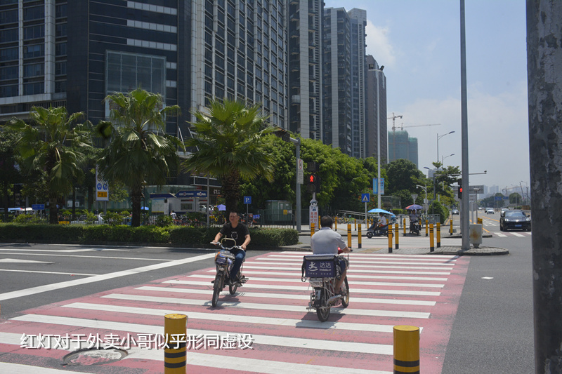 其中 “美团外卖” 14名送餐小哥闯红灯,1名在机动车道内侧行驶;“饿了么”2名送餐小哥闯红灯;“蜂鸟配送”闯红灯1名;“达达”闯红灯2名,在十字路口处随意拐弯1名;“点我达”闯红灯1名。