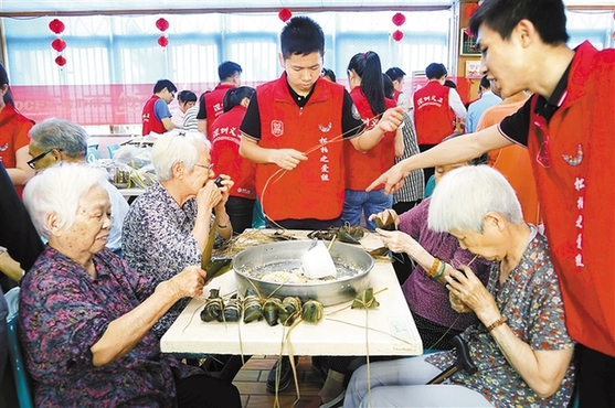今年端午节,市义工联的义工们来到福田区福利中心,与老人一起进行包粽子比赛,在轻松快乐的气氛中陪伴老人们过端午。 本报资料照片