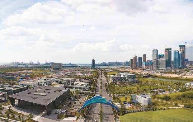 深圳将加快前海深港合作区和前海蛇口自贸片区开发开放,努力构建更高水平的开放型经济新体制。图为前海深港合作区俯瞰。(深圳报业集团资料图)