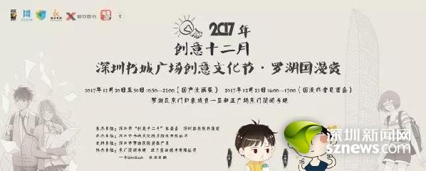 2017创意十二月“深圳书城广场创意文化节• 罗湖国漫赏”活动是在罗湖区投资推广局特别支持下,由深圳出版发行集团主办,深圳市书城文化投资控股有限公司承办,北京磨铁图书有限公司、一本OneBook、漫漫漫画共同协办的系列国漫主题文化交流活动。