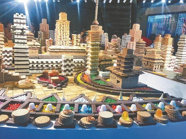 其中,由10万块饼干和糖果搭建的“童话小镇”,就是艺术家宋东著名的“吃城市”系列一次新的呈现。这里建筑和道路都是由饼干、糖果等食物搭建和铺就,观众在参观的同时还能大享口福。(记者 吕薇)