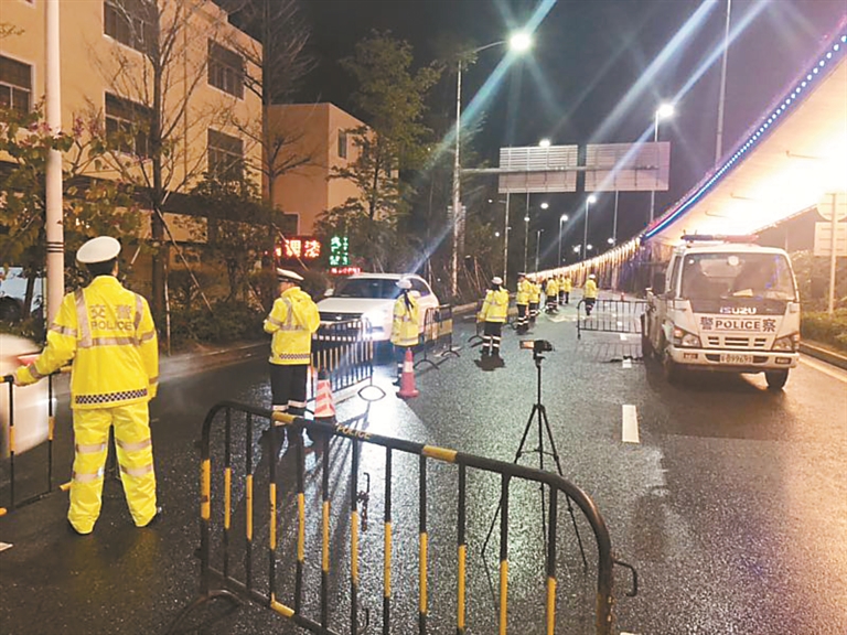 ▲深圳交警在路面设点开展“猎虎”行动。深圳晚报记者 马超摄