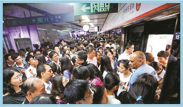 现状:地铁4号线高峰期日均人流量是设计量30倍