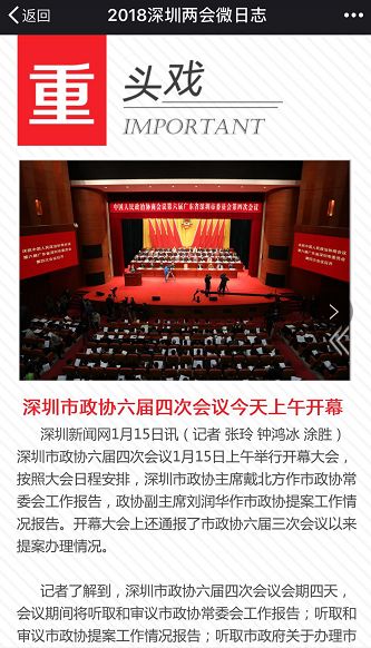 中国共产党深圳市第六届委员会第九次全体会议已于2018年1月14日召开,深圳市政协六届四次会议1月15日开幕,深圳已经进入两会时间!