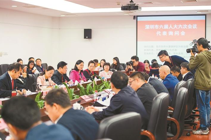 市六届人大六次会议代表询问会现场,人大代表就“我市饮用水源保护区污染治理”主题面对面询问相关政府职能部门的负责人。 深圳特区报记者刘羽洁 摄