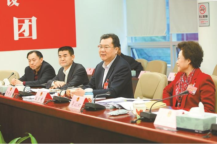 ▲在市六届人大六次会议分组讨论中,王京东就推进深圳海洋事业发展建言献策。深圳晚报记者 余海洪摄
