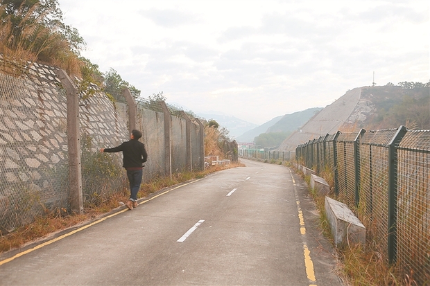 沿着丽康路驾车往东走,道路渐渐狭窄了起来,左侧竖立着的一根根水泥栏杆跟铁丝网,就是原来的管理线遗址。如今,随着丽康路(麻磡—福光段)的拓建工程,这里的铁丝网被白色塑料板所覆盖着,原来的道路成了路的一侧,二线关的铁丝网从道路中穿过,只等被拆除。