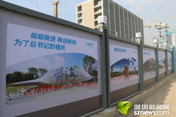 记者了解到,铁建南方深圳市前海市政VI标工程第二项目部为展示良好的外部形象,还全面启动了围挡改造工程,在南环地下车行联络道工地新安装围挡,采用了龙骨+钢板的装配方式,立柱间距3米,立柱顶部设有外轮廓为正方形的内置LED灯,围挡顶部每间隔1米,设置一个喷淋系统,起到了降尘环保作用,围挡宣传画采用别具一格的前海元素,统一浅灰色的布置,底部为深灰色,显得更加庄重大方。