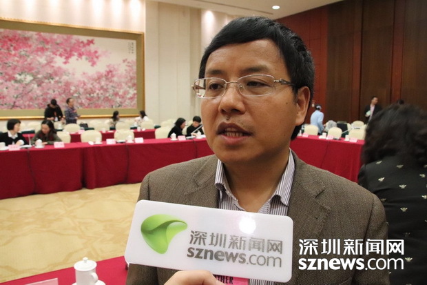 谢志岿在分组讨论后接受深圳新闻网记者的采访