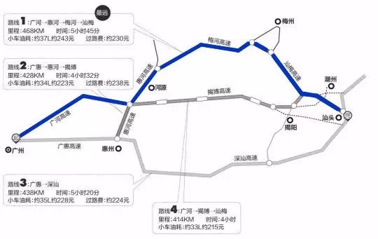 揭博高速起于揭阳揭西,止于惠州博罗。全长约161公里,全程双向六车道,设计速度为120公里/小时。