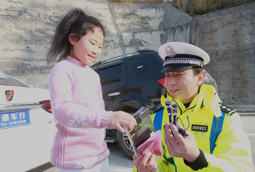 15时17分,蜀黍们一行在京港澳高速继续北行,到达(G4)佛冈服务区路段,双向两车道运行顺畅。蜀黍们在服务区派送交警爱心礼物。