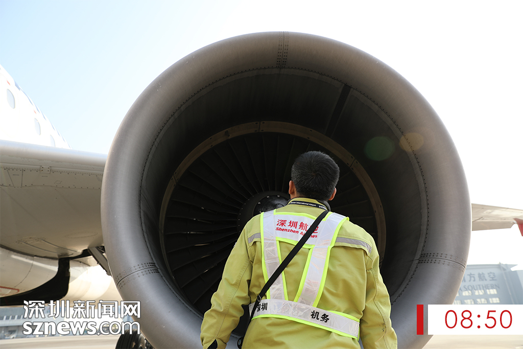 8点50分,站在巨大的飞机发动机进气口前的张亮,显得有些渺小