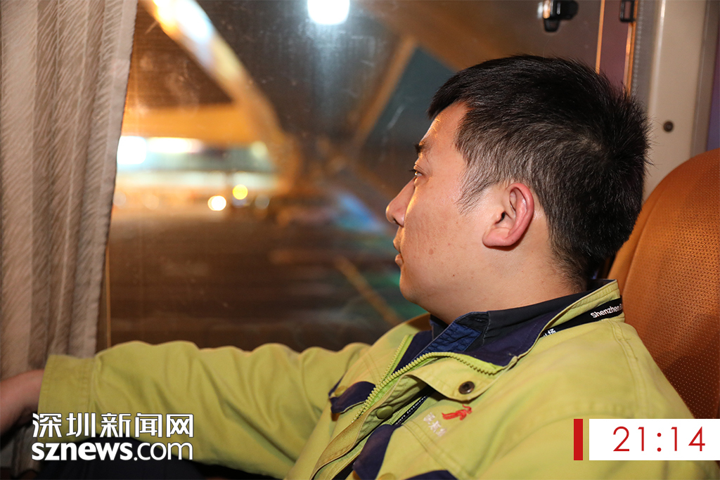 21点14分,张亮结束了一天的工作,乘坐摆渡车回家