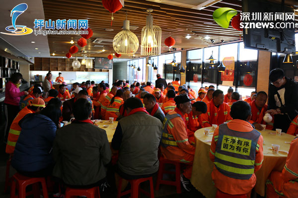 网络媒体走转改|坪山爱心企业邀请“城市美容师”享用团年饭