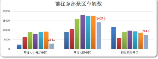20日12时至21日12时,前往东部景区车流量环比下降。共有2831辆机动车前往大、小梅沙景区,14246辆机动车前往大鹏景区,7443辆机动车前往惠州景区。