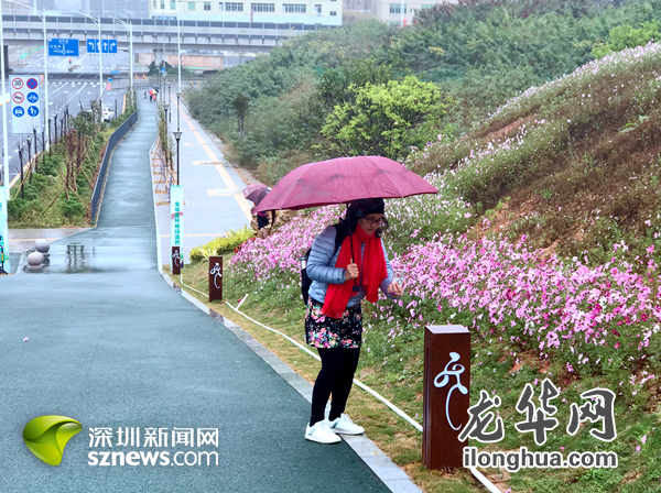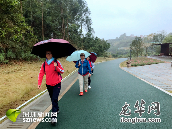 下雨也不能阻挡市民游览绿道的脚步。