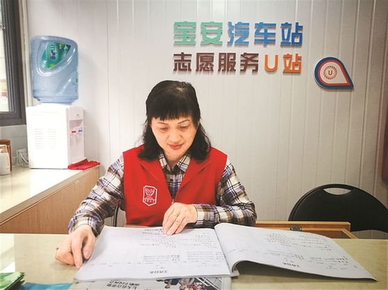 3月4日中午,记者在宝安汽车站前的U站见到了行色匆匆的温秋平,她刚趁着午休时间去火车站送完女儿回来,连招呼都来不及打,又穿上红马甲开始工作。温秋平今年48岁,是一名全职义工。她笑容亲切,对工作充满热情。在接受记者采访的过程中,她还出面制止了一位旅客的抽烟行为。