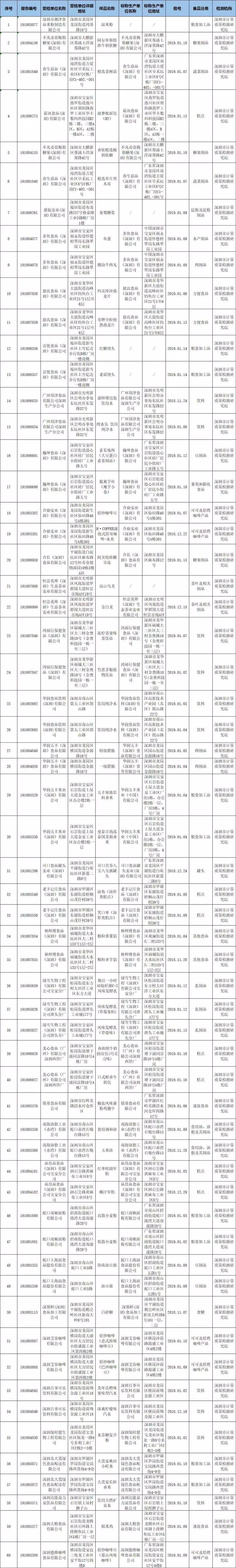 2019年食品安全抽样检验情况通报