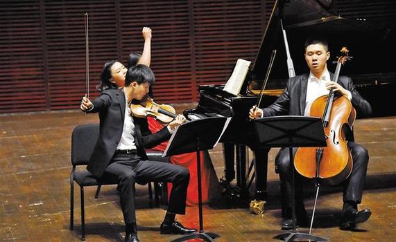 压轴献演的是美国音乐艺术家协会签约艺术家、钢琴家董霏霏。她是土生土长的深二代,在蛇口育才学校毕业后以全奖考进美国朱莉亚音乐学院,成为该校的本科、硕士研究生。董霏霏为观众献上了肖邦《降E大调回旋曲》与列波尔曼《奇异石雕》两首经典作品。最后,由董霏霏、廖尚文、张炜合奏的门德尔松《d小调第一钢琴三重奏》第一乐章为音乐会画上了圆满的句号。(记者祁琦)