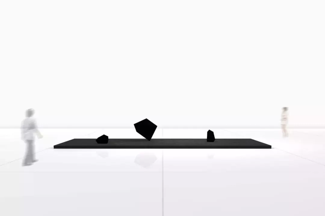 《墨庭》是设计师太刀川英辅2018年的最新作品之一,特为此次深圳设计周主题展所创作,并进行全球首展。设计师试图用最新的科技去呈现传统的禅文化——高科技使得人类创造出一种远远凌驾于普通黑色之上的“漆黑ZENBLACK”,并通过这种深邃的“漆黑”模拟“禅”的宗教精神和艺术意识,呈现出一幅宛如1200多年前的日式枯山水园林景象。