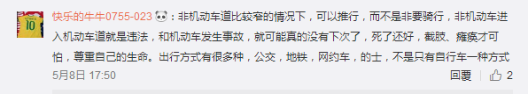 深圳的城市道路规划要不断完善,需要市民及相关部门的共同努力,无论如何,生命至上,非机动车应避免走机动车道。就如交警蜀黍说得“发生交通事故,就没有下次了。”
