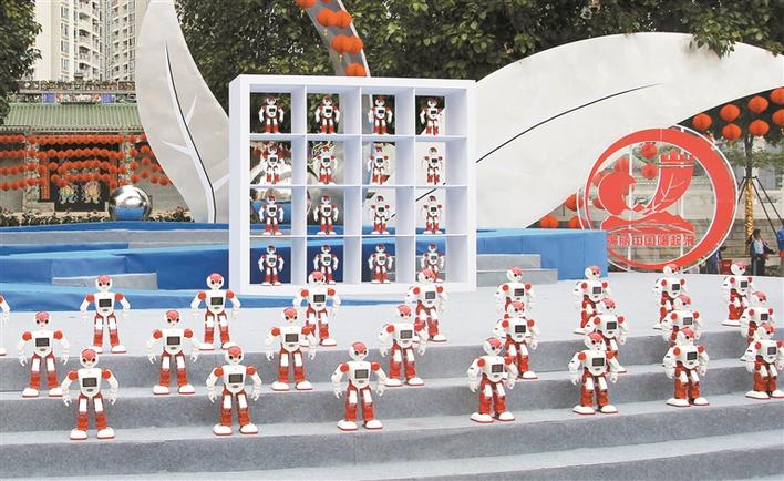 日前,记者走进城市漫步科技公司,发现城市漫步小E不仅会跳各种舞蹈,而且人工智能功能一应俱全,还能进行人机语音交互、儿童早教益智教育、家庭安防监控等功能。图为城市漫步小E机器人亮相央视舞台。深圳特区报记者 何龙 摄