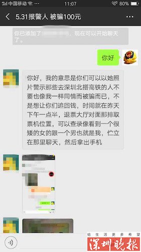 43岁香港籍女子苏某打着以证件丢失需要补办证件的幌子,在深圳北站向旅客"借钱"求助。为骗取旅客信任,苏某主动添加微信,许诺尽快还钱,并利用朋友圈及证件照片加以印证身份,成功诈骗了20多名旅客,涉案金额4000余元。尝到甜头后,苏某想以此作为"长期饭票",没想到被民警抓获归案。6月2日,苏某被深圳铁路公安处依法给予行政拘留十日处罚。