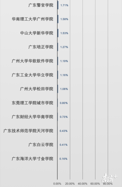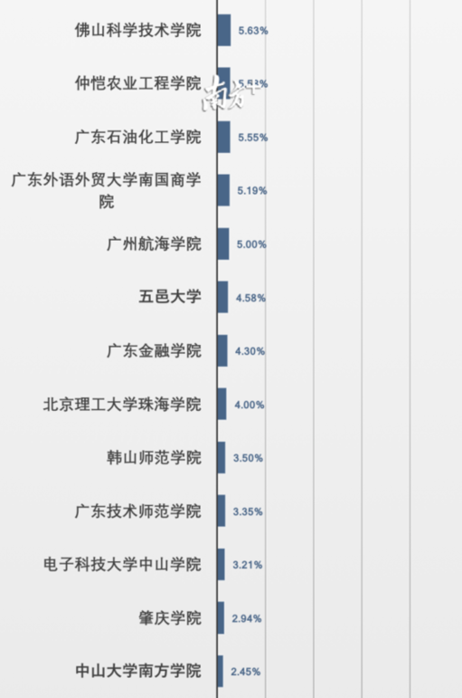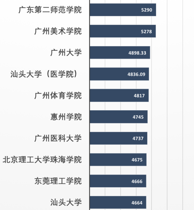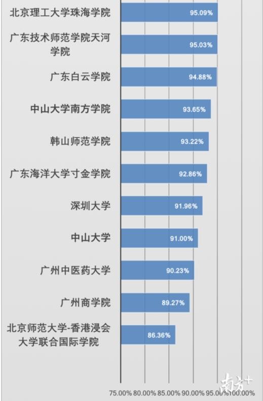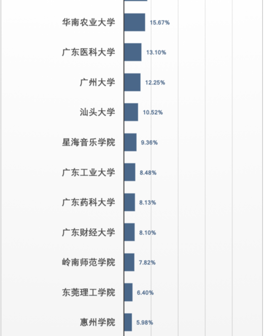 小编根据已公布的数据发现,本科院校中华南理工大学、暨南大学、南方医科大学、北师大-香港浸会联合国际学院(下称英文简称“UIC”)、广东外语外贸大学、广东财经大学、广东金融学院、深圳大学、广东第二师范学院、广东美术学院排名前10。