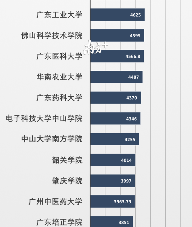(注:以报告中本科平均薪酬数据为准,未公布该项数据的高校,以及仅公布不同薪酬区间占比的高校未列入排名。其中广东财经大学、惠州学院、东莞理工学院、肇庆学院为2017届毕业生整体数据。)