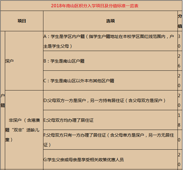南山区小一初一积分入学最新标准